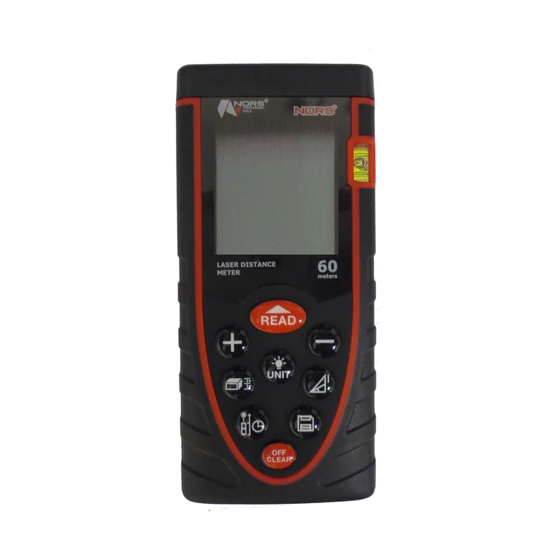 مترهای لیزری NORS با دارا بودن کیفیت و تجمیع برنامه ها و توابع کاربردی، دارای قیمت بسیار مناسب است. متر لیزری مدل NORS با ابعادی کوچک، جهت حمل و استفاده راحت و با برد اندازه گیری تا ۶۰ متر و دارای کلیه امکانات شامل محاسبه مساحت و حجم و فیثاغورث تکی و دوتایی(اندازه گیری یک ارتفاع یا طول که قابل دسترسی نیست)،اندازه گیری ممتد یا لایو و اندازه گیری ماکزیمم و مینیمم و قابلیت عملکرد اندازه گیری به تمامی واحد های اندازه گیری بر اساس متر، فوت و اینچ و فوت + اینچ و قابلیت تبدیل تمامی واحد های اندازه گیری به یکدیگر نیز می باشد و صفحه نمایش ۴ خطی با چراغ و قابلیت خاموش شدن اتوماتیک نور صفحه و لیزر و سپس خود دستگاه را دارد. بدنه این دستگاه از آلیاژ پلاستیک سبک وزن مهندسی با استحکام بالا ساخته شده است که نه تنها ظاهری زیبا دارند بلکه در برابر سایش و خش مقاومتر هستند.